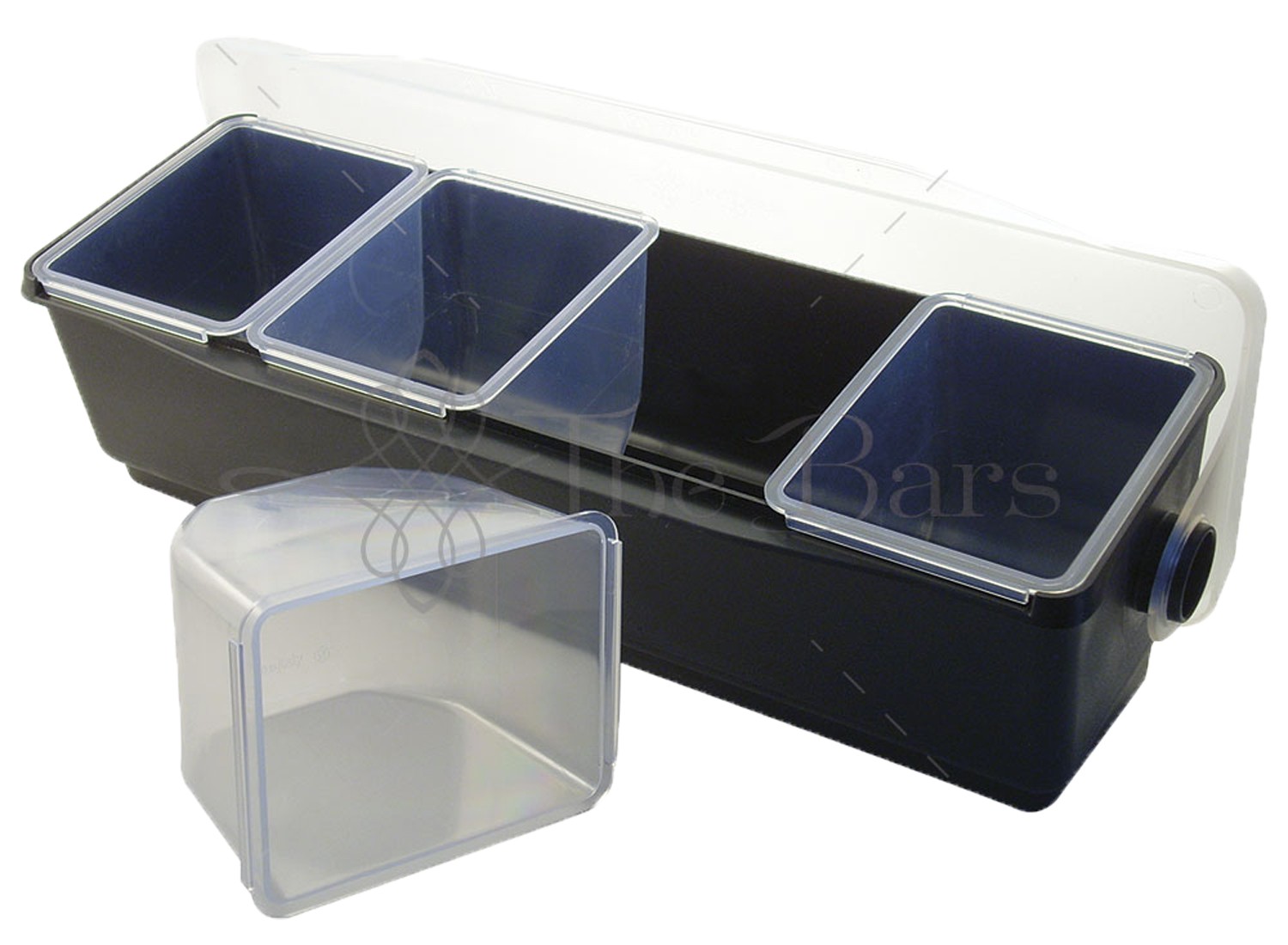 E' realizzata in materiale di alta qualità, rivestito con una superficie fenolica che lo rende idrorepellente. Essenziale sicuro e funzionale questo bancone include anche una postazione con contenitori per frutta, ghiaccio e una speed rack dalla capacità di circa 10 bottiglie.