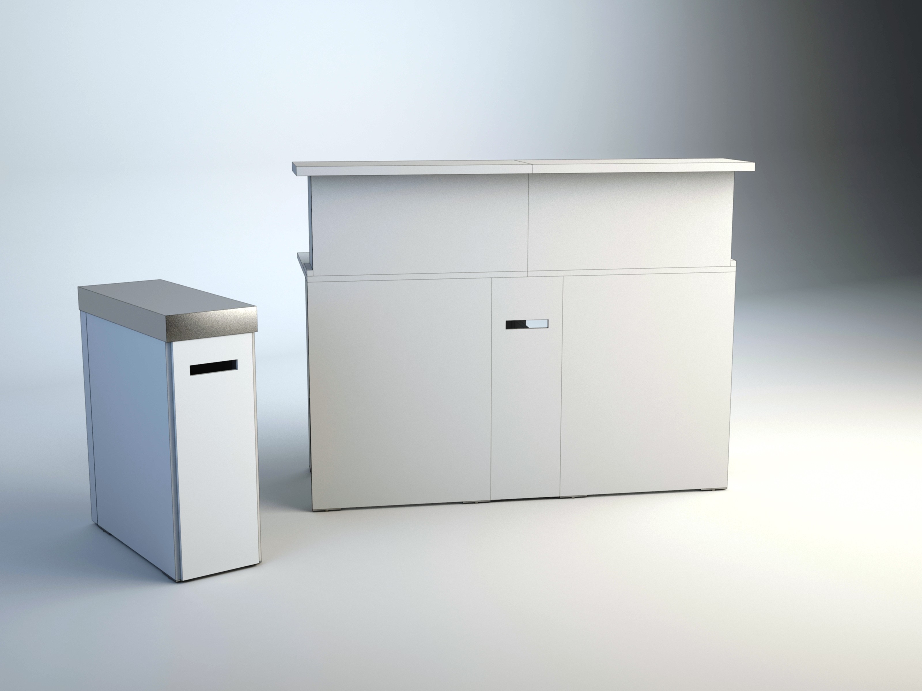 E' un bancone senza incassi, con un ripiano liscio, perfetto per eventi, Hotel, Catering.