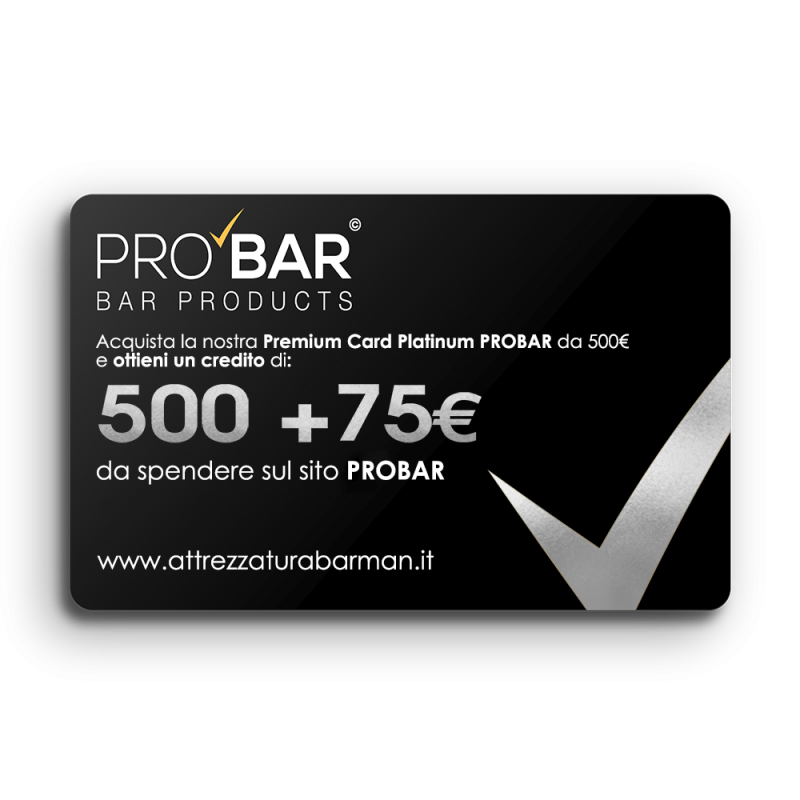 *Le Premium Card PROBAR possono essere spese per acquistare attrezzature barman e bicchieri ad eccezione di banconi bar, accessori banconi, Kit Flavour Blaster ed altre Premium Card.
